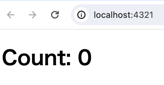 <html lang='en'> <head> <meta charset='utf-8' /> <link rel='icon' type='image/svg+xml' href='/favicon.svg' /> <meta name='viewport' content='width=device-width' /> <meta name='generator' content='{Astro.generator}' /> <!-- これを追加 --> <script src="https://unpkg.com/htmx.org@1"></script> <title>Astro</title> </head> <body> <h1>Count: {count}</h1> <!-- この2行を追加 --> <button hx-post="/api/increment">Increment</button> <button hx-post="/api/decrement">Decrement</button> </body> </html>